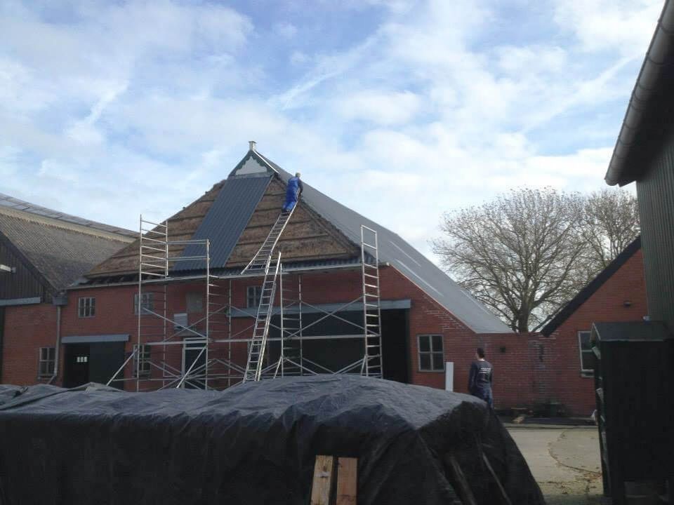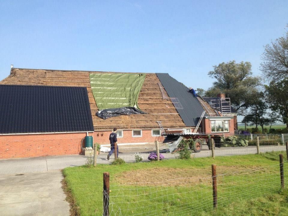 In Winsum werd dit oude rieten dak voorzien van stalen dakplaten. Deze zijn over de originele rieten kap heen bevestigd. Hierdoor is er tijdens het aanbrengen geen (water)schade ontstaan, omdat het dak niet open is geweest. Daarnaast is de isolatiewaarde van dak gebleven zoals hij was.